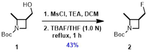 Doyle课题组的论文发表后,因为我们已经拥有了QM计算能力,所以实验室能立即使用这个QM-ML脱氧氟化模型来寻找更好反应条件。如图3所示,化合物1中的醇羟基使用甲磺酸酯活化后,TBAF取代得到氟化产物2,反应收率为43%, 该反应损失了超过一半的珍贵中间体1。